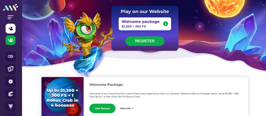 Alf Casino has a generous welcome bonus package, which not only gives you some extra when you make the first deposit, but offers money and free spins for your second, third and fourth deposit as well. This online casino bonuses also include chances of winnings on the game called Bonus Crab.